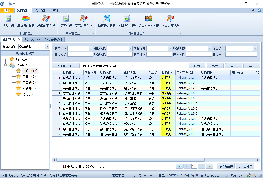 軟件缺陷管理系統,是一款針對項目開發(fā)過程中,對缺陷的記錄跟蹤管理的軟件。該軟件以CMMI5內部缺陷管理流程為藍本,提供豐富的缺陷數據管理和完美的權限控制功能,讓您的軟件項目開發(fā)過程得到很好的控制,并規(guī)范化開發(fā)流程。