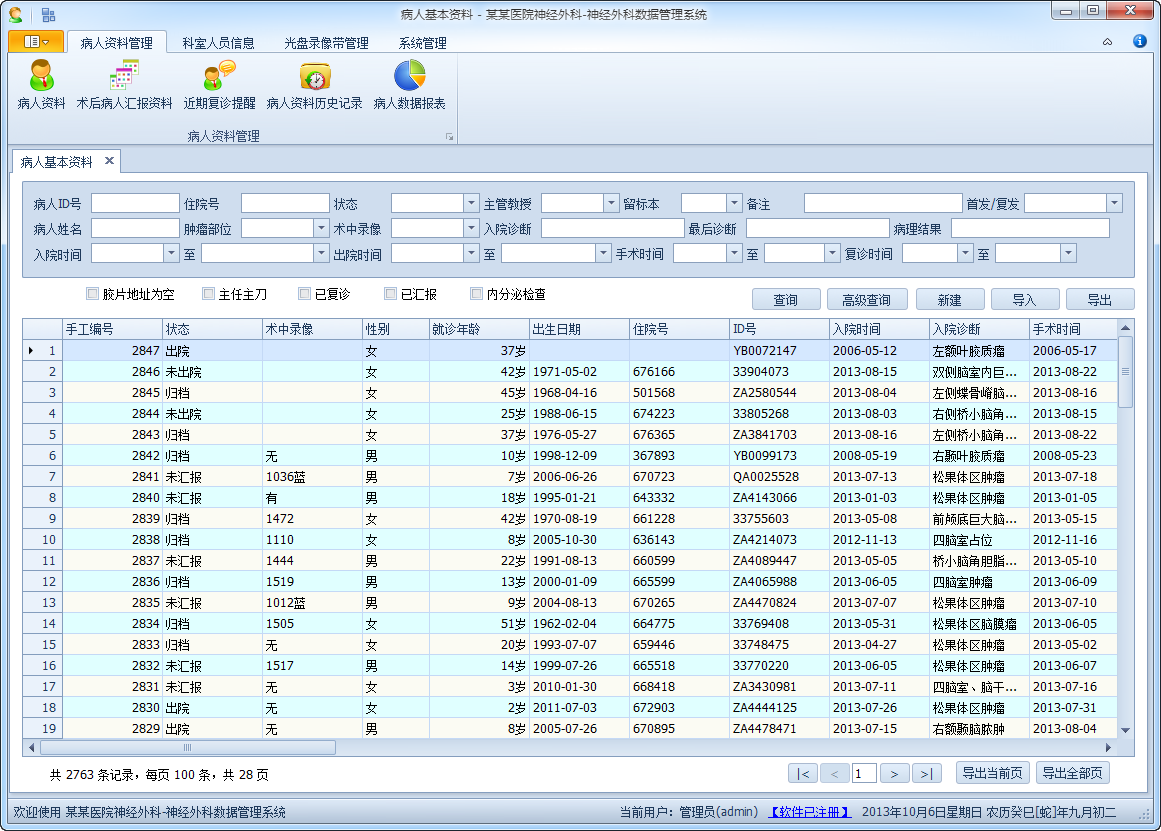 軟件支持對病人基本情況、手術情況、隨訪情況等方面信息的管理,根據不同的科室的數據管理要求進行不同的定制,軟件界面大方美觀, 具有良好的穩(wěn)定性和友好性,已經成功運行在多家大型醫(yī)院科室的管理中,獲得眾多客戶的好評和信賴。